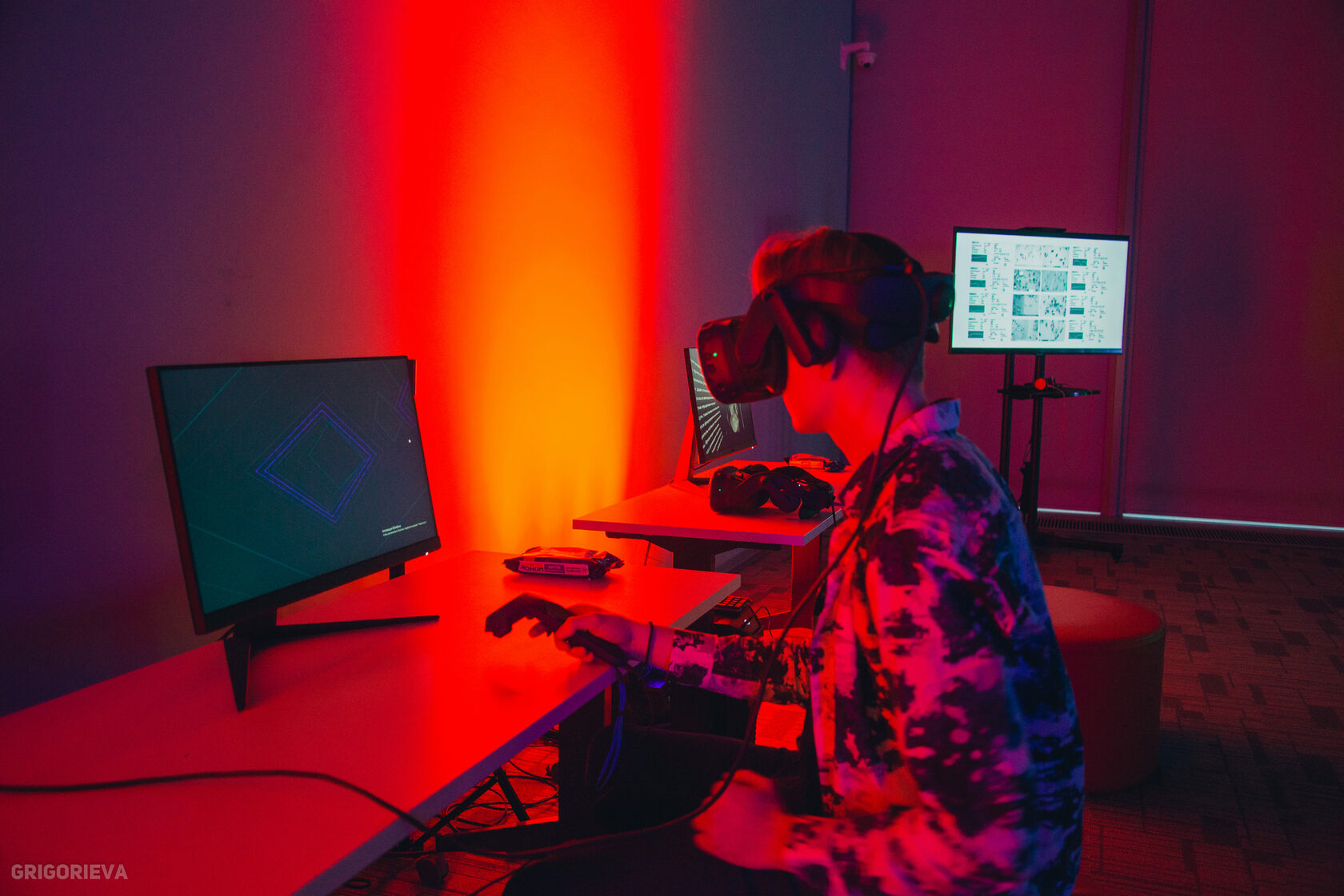 Audio Visual Tunnel for Virtual Reality. A fully automated system that immerses the viewer in a space of sound using graphics and VR capabilities. The project was created within the framework of the Master's degree program "Technological Art" at NUST MISIS, 2021